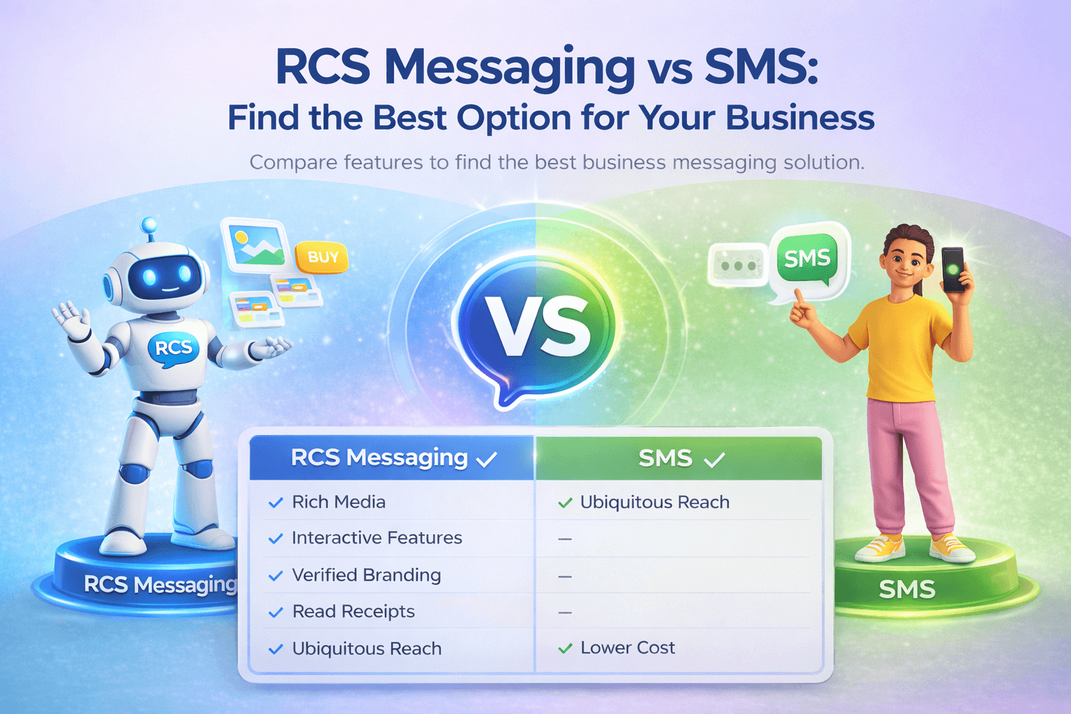Compare RCS messaging vs SMS for business use. Learn key differences in features, cost, open rates, and compatibility to choose the best messaging strategy for your brand in 2026.