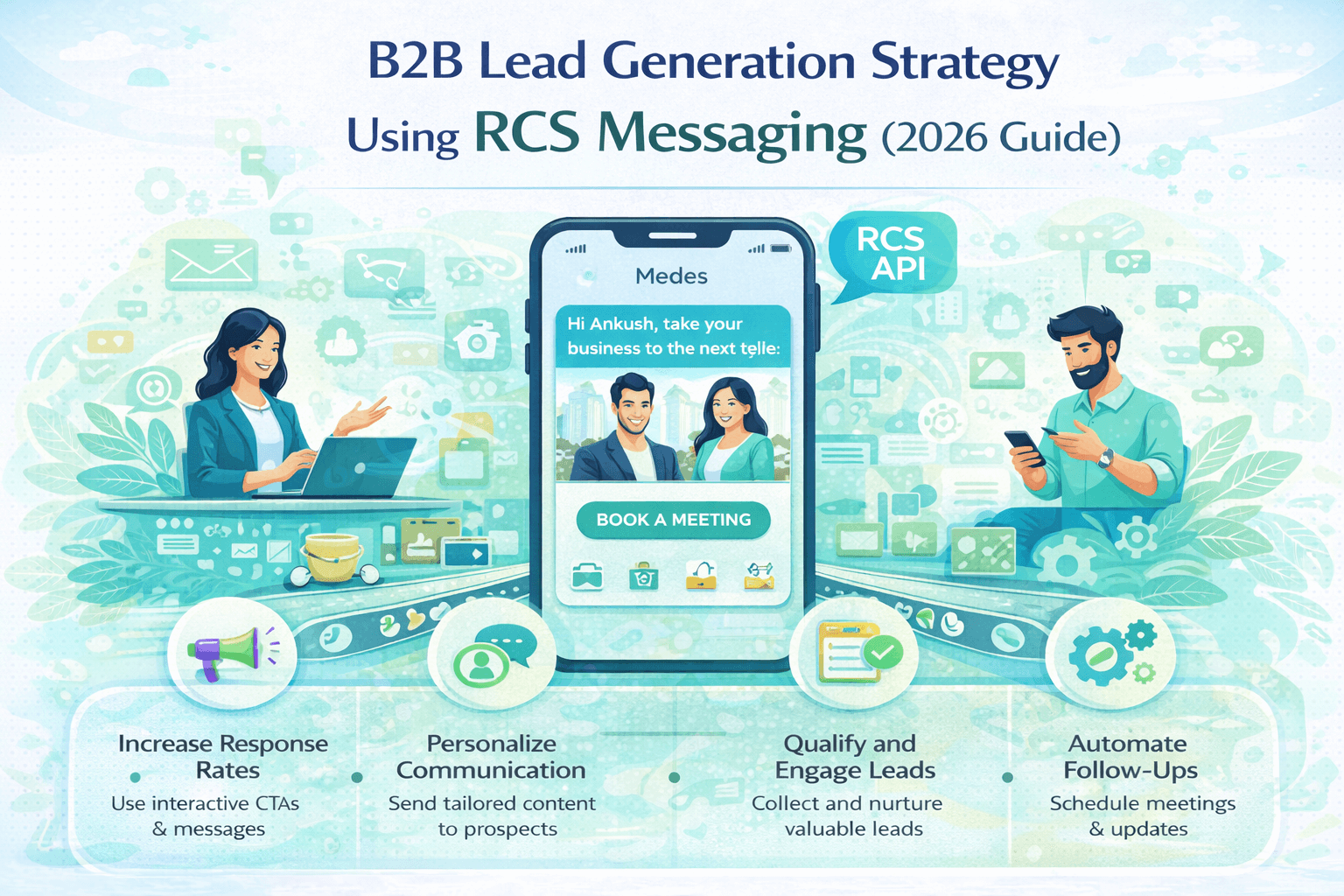 7 proven B2B lead generation strategies using RCS messaging — cold outreach, ABM, event follow-up, demo scheduling, and referral programmes. With 15+ templates for 2026.