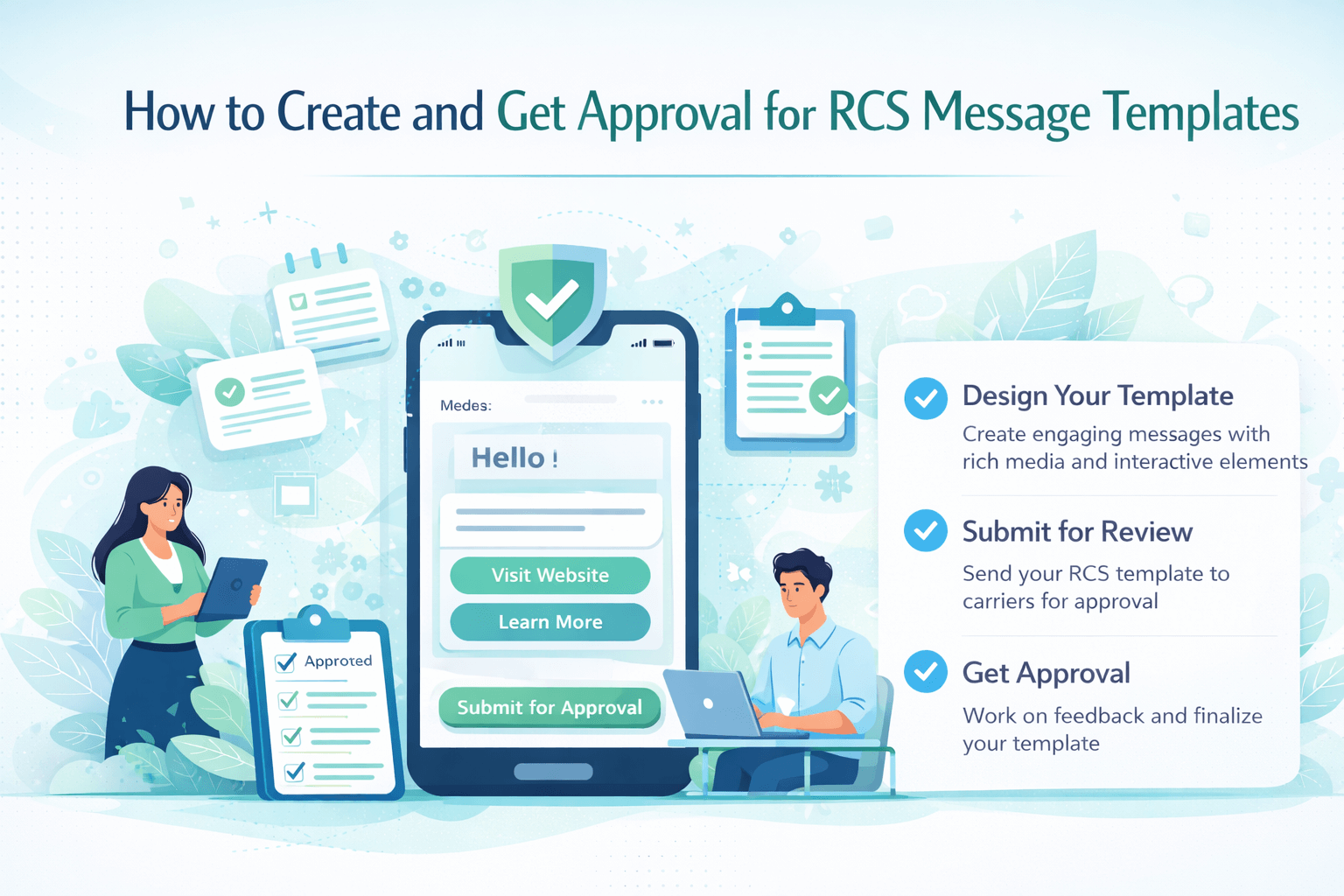 Learn how to create, write, and get approval for RCS message templates in 2026. Includes 20+ examples, rejection fixes, and step-by-step submission guide.